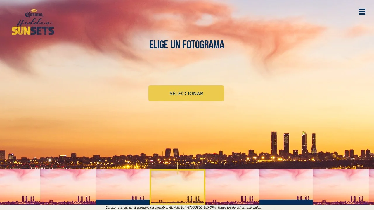 Se diseñó toda una landing para conseguir entradas para el festival Hidden Susets y además escuchar tu tema favorito mientras elegías tu momento favorito del atardecer.